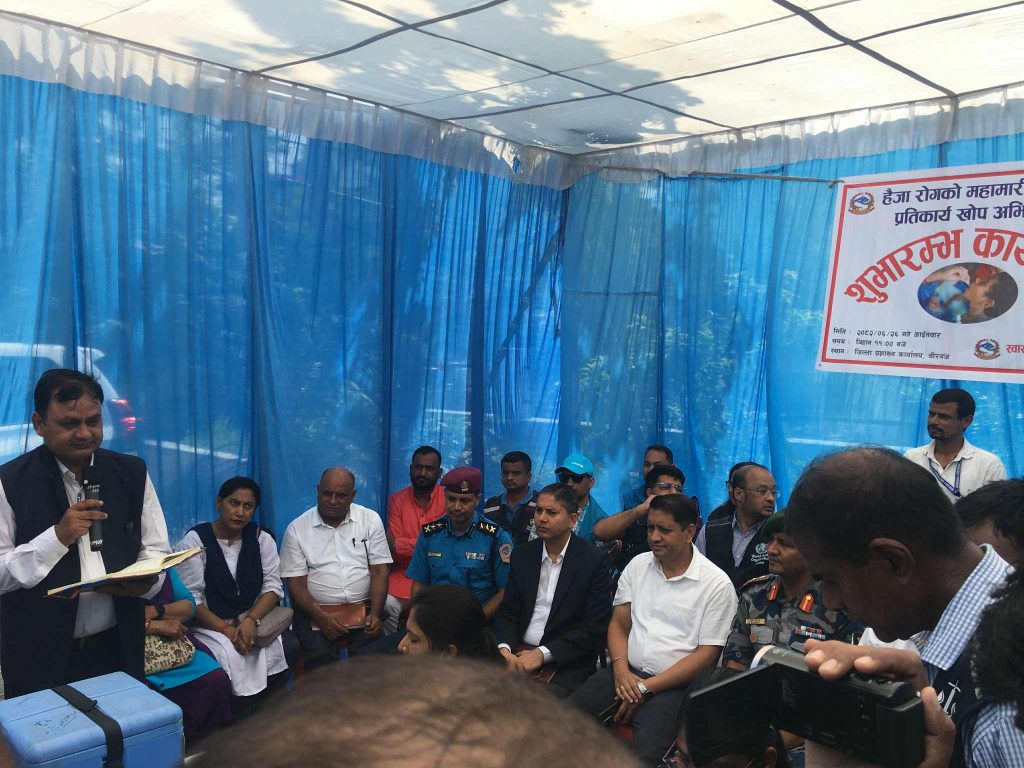 हैजा फैलिएपछि स्वास्थ्य तथा जनसङ्ख्या मन्त्रालयले खोप व्यवस्था सम्बन्धी अन्तर्राष्ट्रिय समन्वय समूह (आइसिजी) सँग खोप मागेको थियो । परिवार कल्याण महाशाखाको नेतृत्वमा विश्व स्वास्थ्य सङ्गठन र युनिसेफको प्राविधिक सहयोगमा अभियान सञ्चालित छ ।