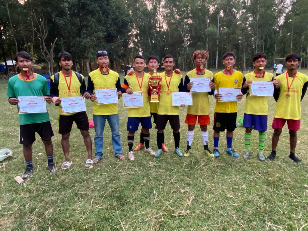 बाँके । दीपावलीको उल्लाससँगै राप्ती सोनारी गाउँपालिका–७ सहिद दलबहादुर घर्ती मगर खेलमैदान हर्ष र हुटिङले गुन्जियो । सातौं अन्तर सामुदायिक वन उपभोक्ता समिति स्तरीय वडा कप फुटबल प्रतियोगिताको उपाधि कुसुमीया सामुदायिक वन उपभोक्ता समितिले जितेपछि मैदान रमाइलो उत्सव स्थलमा रूपान्तरण भयो ।