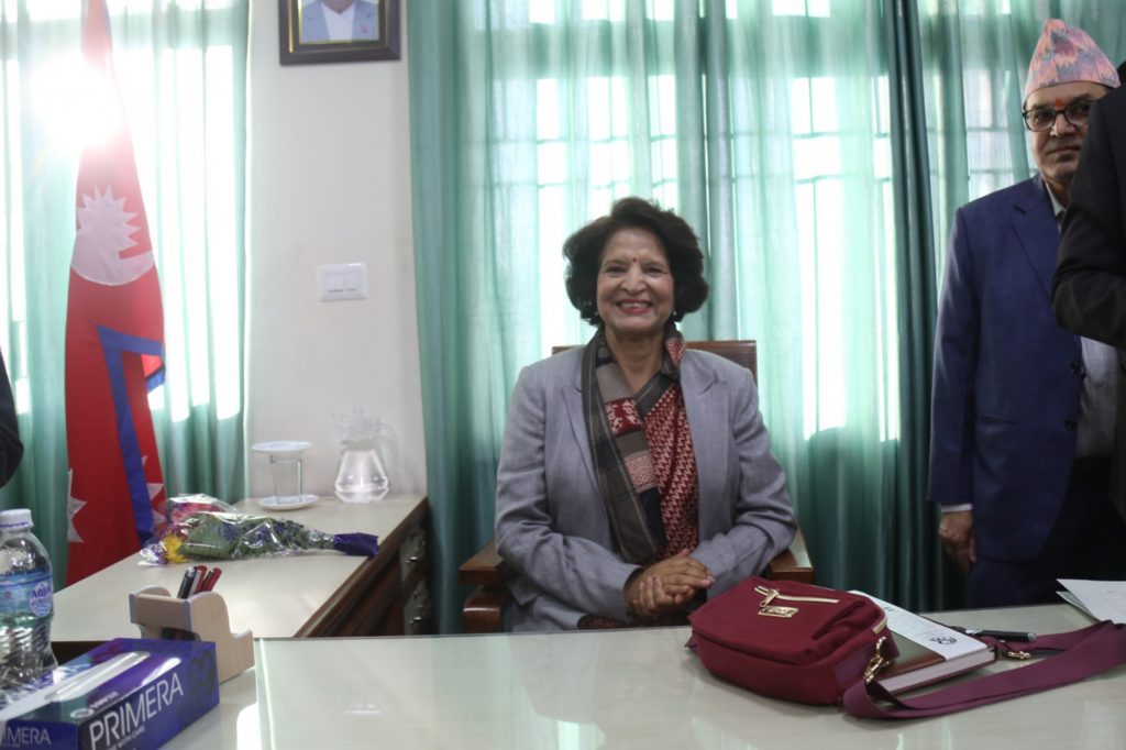 काठमाडौँ । नवनियुक्त स्वास्थ्य तथा जनसङ्ख्या मन्त्री डा सुधा शर्मा गौतमले पदभार ग्रहण गर्नुभएको छ ।