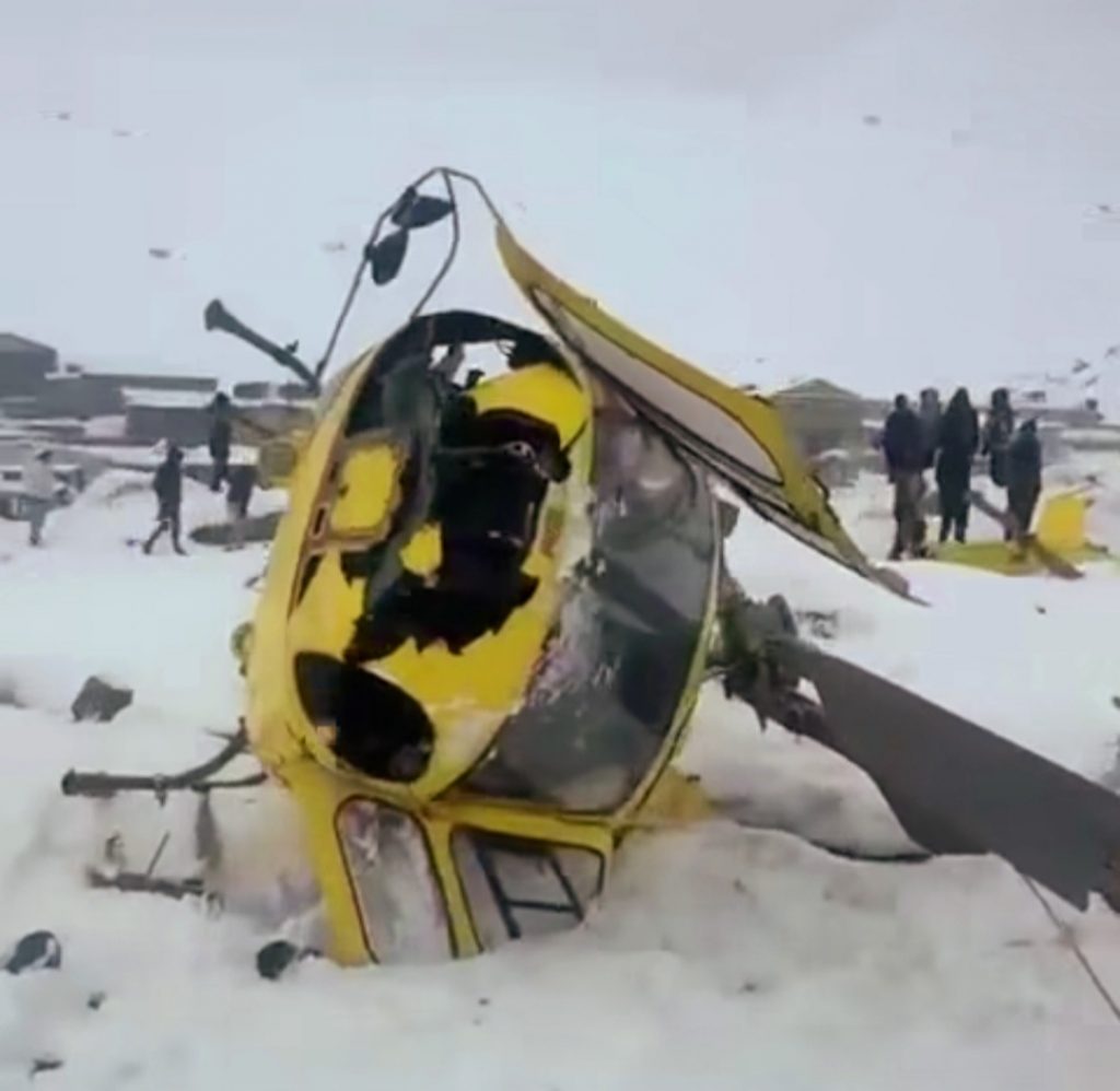 हिजोदेखि परेको हिउँका कारण होटलमा फसेका पर्यटकहरूको उद्धारका लागि गएको उक्त हेलिकप्टर अवतरण गर्ने क्रममा हिउँमा चिप्लिएर दुर्घटनामा परेको अल्टिच्युड एयरका कार्यकारी अध्यक्ष ङिमानुरु शेर्पाले जानकारी दिनुभयो।
