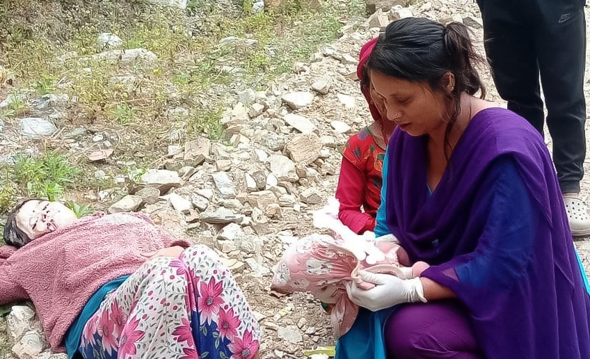 बाजुरा। बाजुराको बुढीगंगा नगरपालिका–७ सिमलकोटकी एक महिलाले बाटोमै बच्चा जन्माएकी छन्। स्थानीय सिर्जना केसीलाई बिहीबार दिउँसो सुत्केरी व्यथा लागेपछि आफन्तहरूले स्वास्थ्य चौकीतर्फ लैजाँदै गर्दा घर नजिकैको बाटोमै बच्चा जन्मिएको हो।