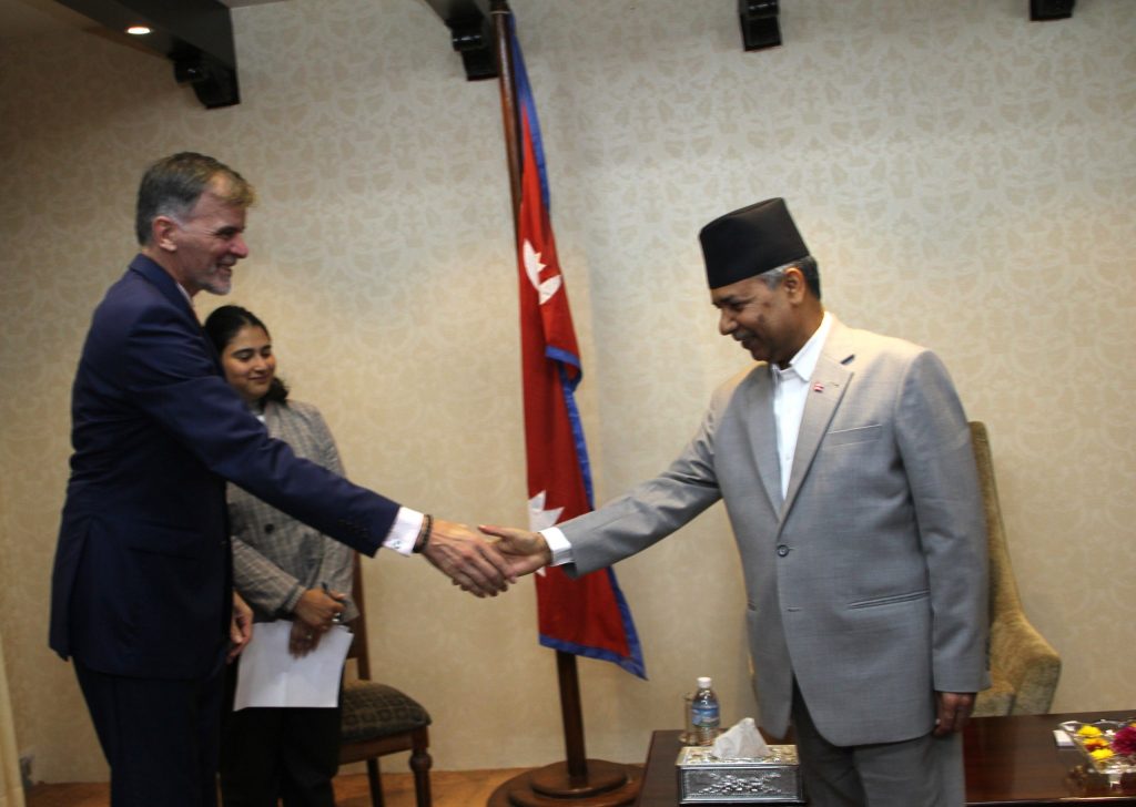 काठमाडौँ । कार्यवाहक राष्ट्रपति रामसहायप्रसाद यादवसँग नेपालका लागि सङ्घीय गणतन्त्र जर्मनीका राजदूत उदो युगेन भोल्जले आज लैनचौरस्थित उपराष्ट्रपतिको कार्यालयमा शिष्टाचार भेटवार्ता गर्नुभएको छ ।