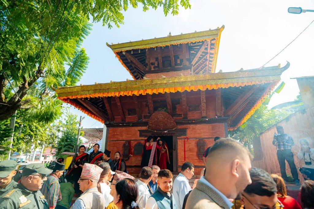 प्रहरीको संरक्षणमा रहेको मन्दिरभित्र रहेको चतुर्मुख ब्रह्माको मूर्तिलाई पञ्चाङ्ग निर्णायक समितिले दिएको साइतअनुसार यही कात्तिक १७ गतेको साइतमा प्रहरी परिसरबाट रथारोहण गरी मन्दिरमा लगेर पुनःस्थापना गरिएको थियो ।