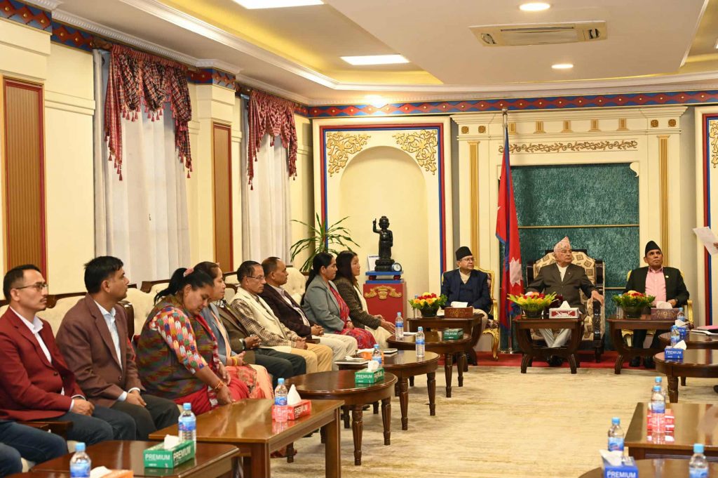प्रतिनिधिसभाका सभामुख, उपसभामुख राष्ट्रिय सभाका अध्यक्ष उपाध्यक्ष एवम् प्रदेशसभाका सभामुख उपसभामुखसँगको शीतल निवासमा भएको भेटमा उहाँले जनताको आवाज सुनेर लोकतान्त्रिक आचरणलाई जीवन पद्धति जति बनाउन सक्छौ त्यति नै लोकतन्त्र र संसदीय प्रणाली अझ सुदृढ हुन्छ भन्ने कुरा बिर्सन नहुने स्पष्ट पार्नुभयो ।