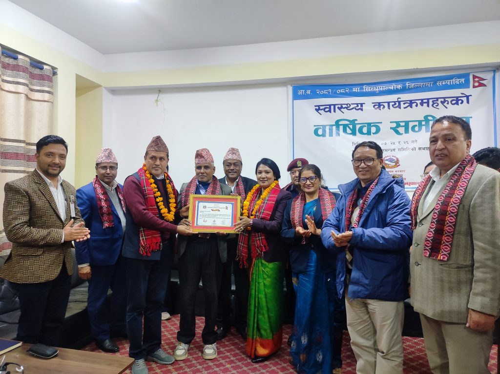 सिन्धुपाल्चोक । आर्थिक वर्ष २०८१/०८२ मा सिन्धुपाल्चोक जिल्लाभर सञ्चालन भएका स्वास्थ्य कार्यक्रमहरूको वार्षिक समीक्षा कार्यक्रम सम्पन्न भएको छ। जनस्वास्थ्य कार्यालय सिन्धुपाल्चोकको आयोजनामा जिल्ला समन्वय समितिको सभा हलमा आयोजित सो कार्यक्रममा जिल्लाका सबै स्थानीय तहले आ–आफ्नो क्षेत्रका उपलब्धि, नवीनतम पहल, समस्या र सिकाइका विषयमा प्रस्तुती दिएका थिए ।