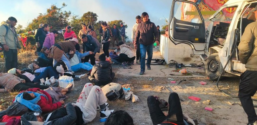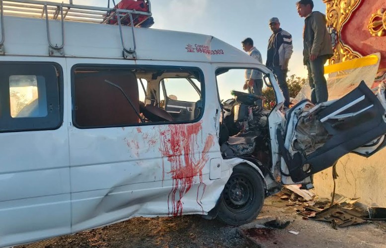 शैलुङको कालापानीमा इभि भ्यान दुर्घटना, एक जनाको मृत्यु १४ घाइते