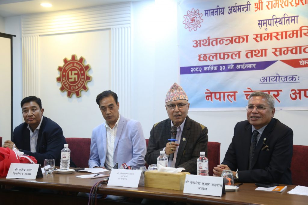 कार्यक्रममा चेम्बरका पूर्व अध्यक्ष राजेशकाजी श्रेष्ठले राजस्व अनुसन्धान विभाग खारेज गरिनुपर्ने, उपभोक्ताको क्रयशक्ति बढाउने, निजी क्षेत्रको व्यवसाय गर्ने वातावरण बनाउनुपर्ने, सीमा नाकाबाट हुने चोरी पैठारी र तस्करी रोकिनुपर्नेलगायत विषय उठाउनुभयो ।