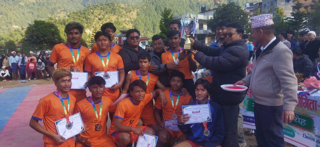 विजेता तथा उत्कृष्ट प्रदर्शन गर्ने टिमहरूलाई रोल्पा नगरपालिका प्रमुख सुरेन्द्र थापा घर्ती, जिल्ला समन्वय समिति उप–प्रमुख कर्मलाल परियार तथा निवर्तमान नगरप्रमुख पूर्ण केसीले पुरस्कार वितरण गर्नुभयो ।