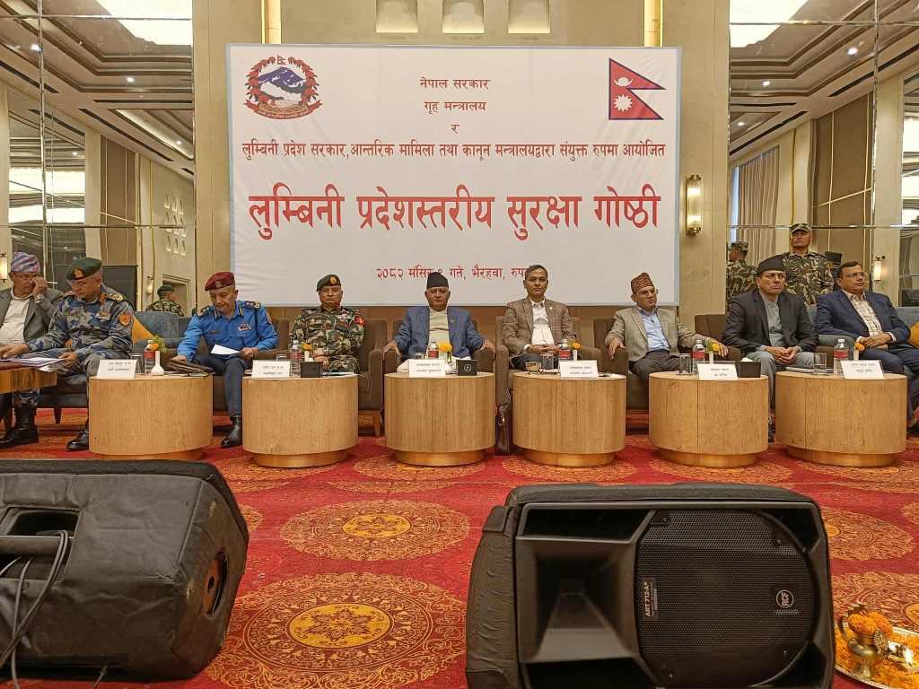 गोष्ठीमा गृहसचिव रामेश्वर दंगाल, नेपाल प्रहरीका प्रहरी महानिरीक्षक दानबहादुर कार्की, सशस्त्र प्रहरी प्रमुख राजु अर्याल, लुम्बिनी प्रदेशका मुख्यमन्त्री चेतनारायण आचार्य र १२ जिल्लाका प्रमुख जिल्ला अधिकारी तथा जिल्ला प्रहरी प्रमुखहरू सहभागी हुनुभएको छ ।