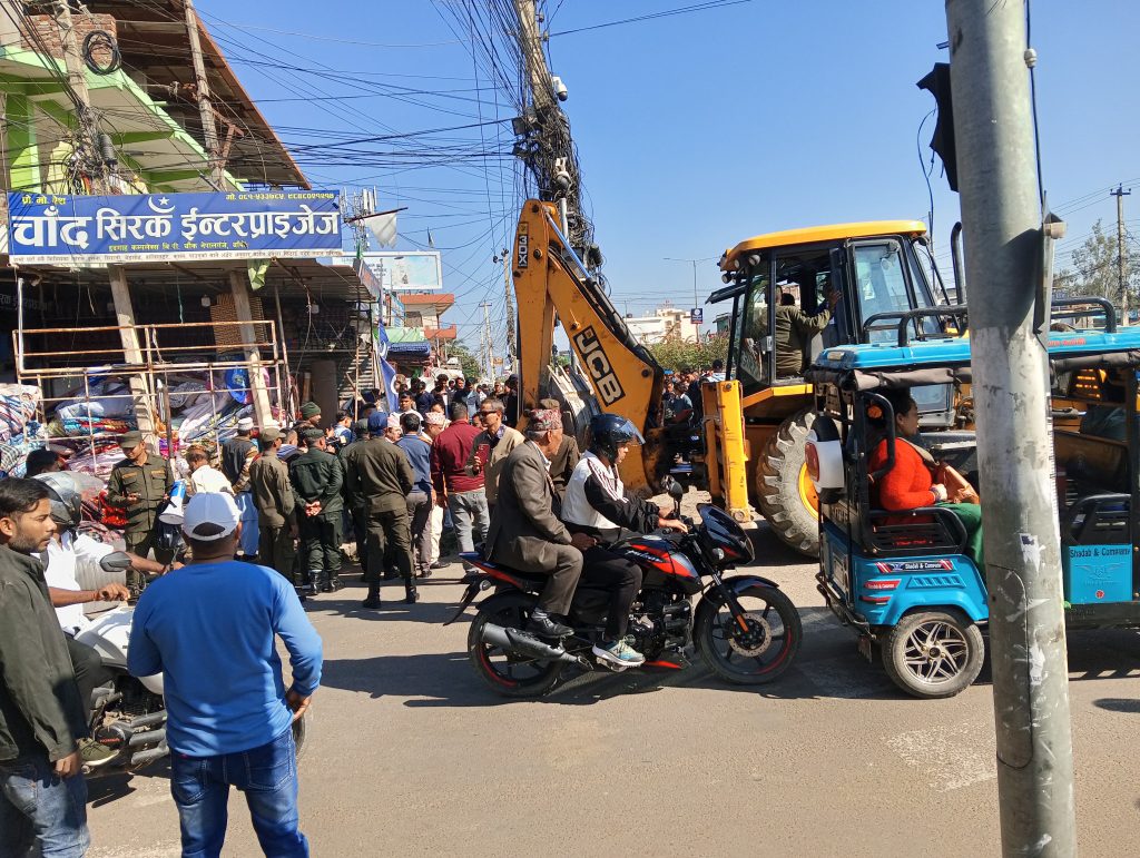 नेपालगन्जमा फुटपाथ अतिक्रमण हटाउन डोजर सञ्चालन