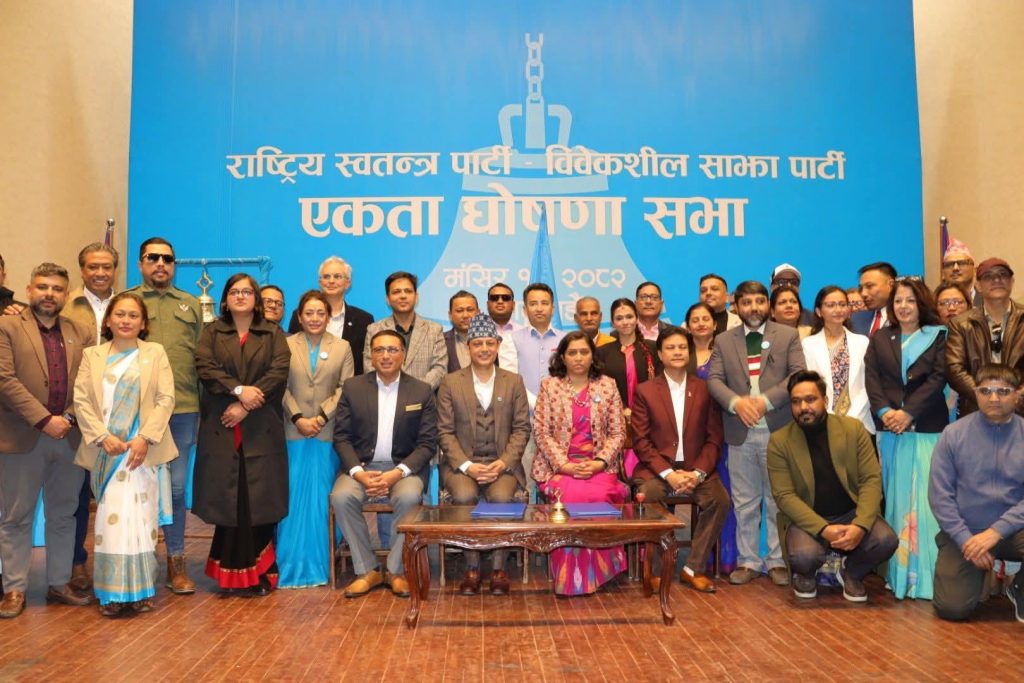 काठमाडौँ । राष्ट्रिय स्वतन्त्र पार्टी (रास्वपा) र विवेकशील साझा पार्टीबिच एकता भएको छ । आज औपचारिक रुपमा काठमाडौँस्थित राष्ट्रियसभा गृहमा आयोजित कार्यक्रममार्फत दुवै दलका शीर्ष नेताले एकता घोषणापत्रमा हस्ताक्षर गर्नुभयो ।