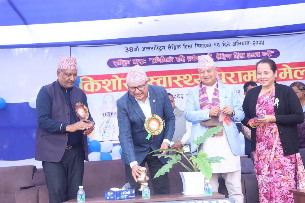 ३४औँ अन्तर्राष्ट्रिय लैङ्गिक हिंसा विरुद्धको १६ दिने अभियान अन्तर्गत मोरङको रंगेलीमा आयोजित किशोरी स्वास्थ्य परामर्श मेलाको आज उद्घाटन गर्नुहुँदै मुख्यमन्त्री कार्कीले अधिकांश महिला हिंसाका घटना पुरुषहरूका कारण हुने गरेकाले महिला हिंसा गर्दिन भन्ने सङ्कल्प गर्ने हो भन्ने महिला हिंसा न्यूनीकरण हुने बताउनुभयो ।