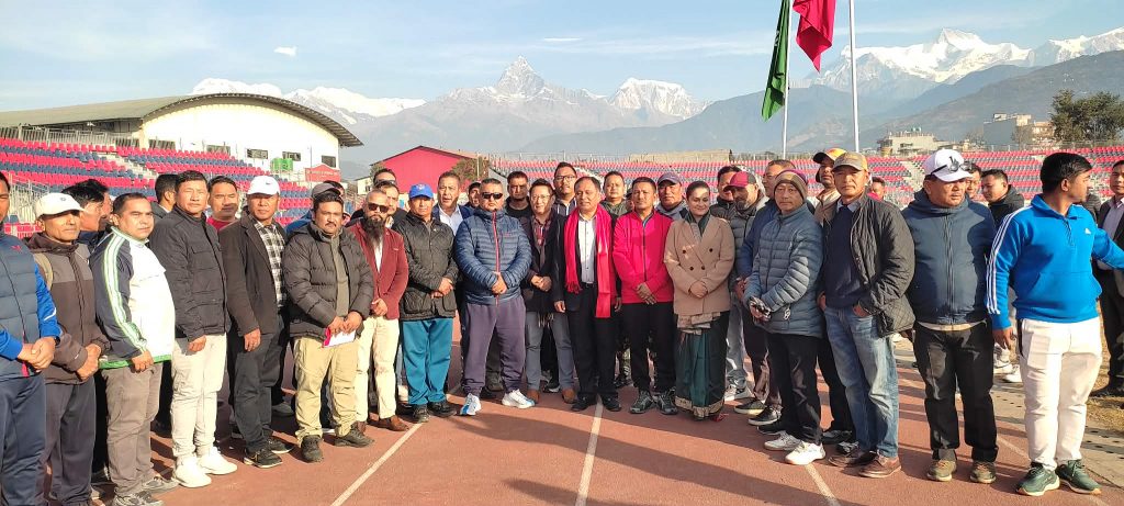 पोखरा रङ्गशालाको फुटबल स्टेडियममा फ्लटलाईट जडान गर्ने मन्त्री घिसिङको आश्वासन