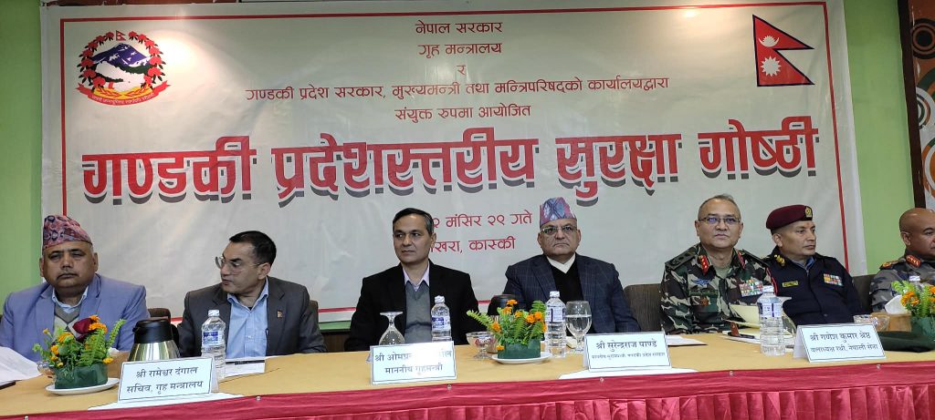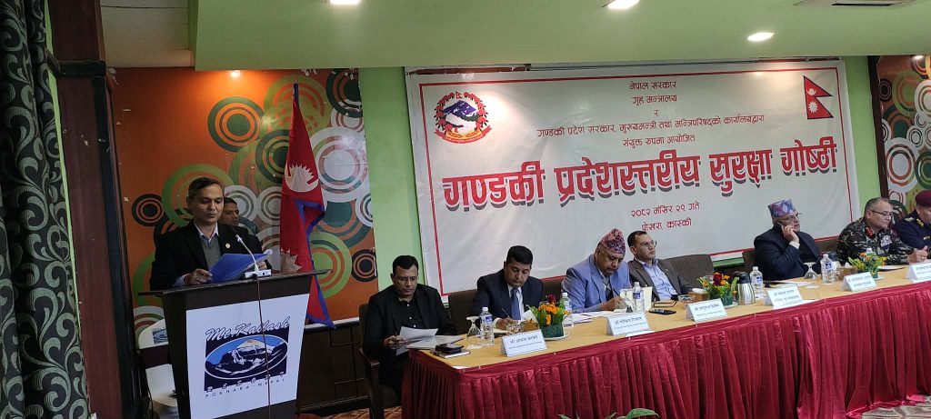 गण्डकी प्रदेशस्तरीय सुरक्षा गोष्ठीलाई आज (सोमबार) सम्बोधन गर्नुहुँदै गृहमन्त्री अर्यालले शान्ति–सुरक्षा सुदृढ गर्दै निर्वाचनको वातावरण निर्माण गर्नु सरकारको पहिलो प्राथमिकता रहेको उहाँले स्पष्ट पार्नुभयो ।