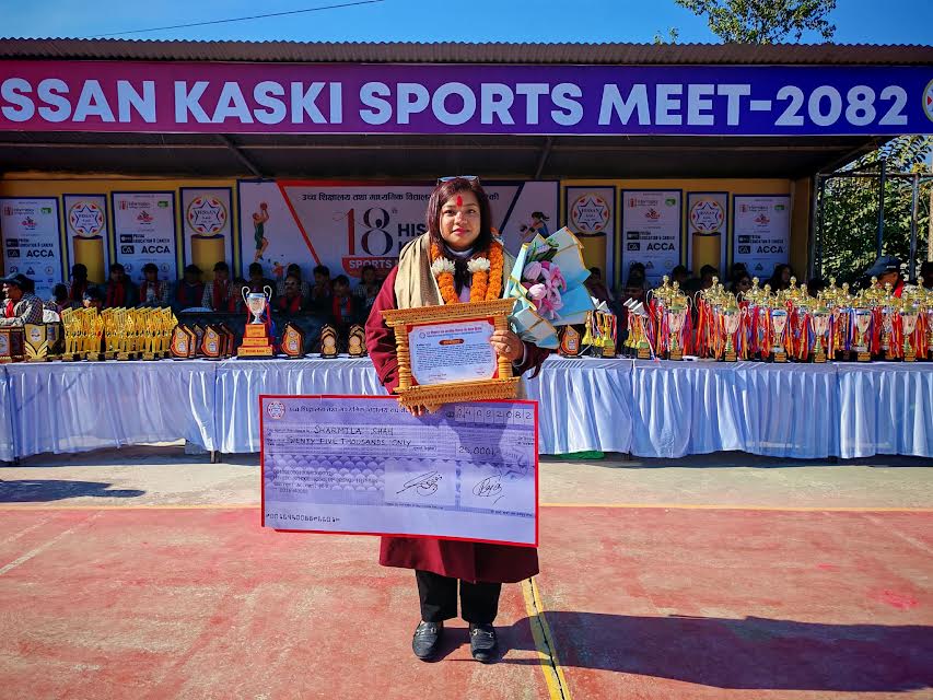 पोखरा । हालै श्रीलङ्काको राजधानी कोलम्बोमा सम्पन्न वर्ल्ड पावर लिफ्टिङमा महिलातर्फ च्याम्पियन बन्न सफल नेपाली खेलाडी शर्मिला शाहलाई पोखरामा नगदसहित सम्मान गरिएको छ ।