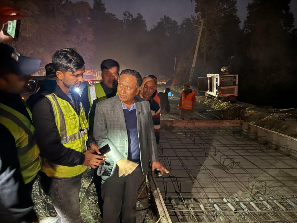 मन्त्री घिसिङद्वारा दाउन्ने सडक खण्डको निरीक्षण