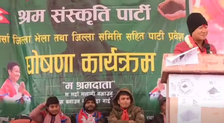 श्रम संस्कृति पार्टीद्वारा पर्सा जिल्लाको ठोरीस्थित बागमोर्चामा आज आयोजित पार्टीको जिल्ला भेला तथा जिल्ला समितिको घोषणा कार्यक्रमलाई सम्बोधन गर्दै अध्यक्ष साम्पाङले श्रम संस्कृतिको बिचार बुझेर मात्रै आफ्नो पार्टीमा आउन युवाहरूलाई आग्रह गर्नुभयो ।