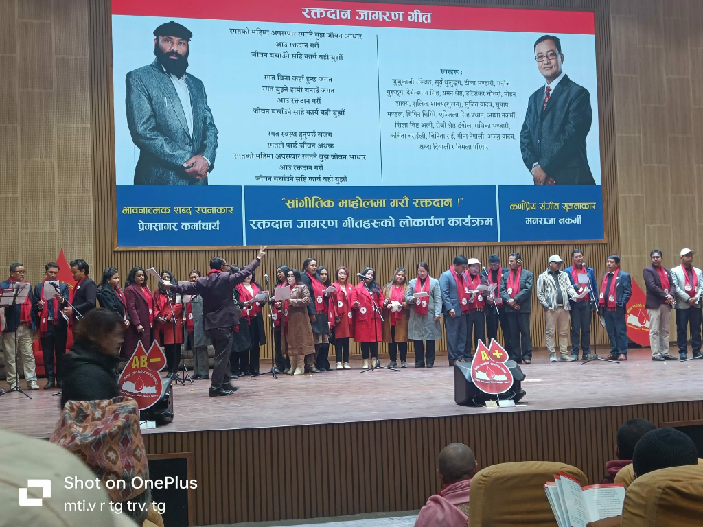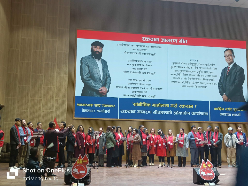 रक्तदान सम्बन्धी समाजमा जागरण फैलाउने उद्देश्यले जागरण गीतहरू तयार गरिएको र काठमाडौँमा आज आयोजित एक समारोहका बीच लोकार्पण गरिएको वरिष्ठ सङ्गीतकार मनराजा नकर्मीले जानकारी दिनुभयो ।