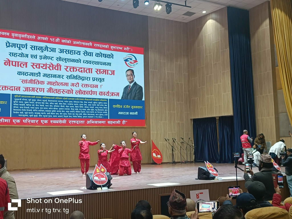 काठमाडौँ । नेपाल स्वयंसेवी रक्तदाता समाज काठमाडौँले आज रक्तदान सम्बन्धी विभिन्न जागरण गीतहरूको लोकार्पण गरेको छ ।