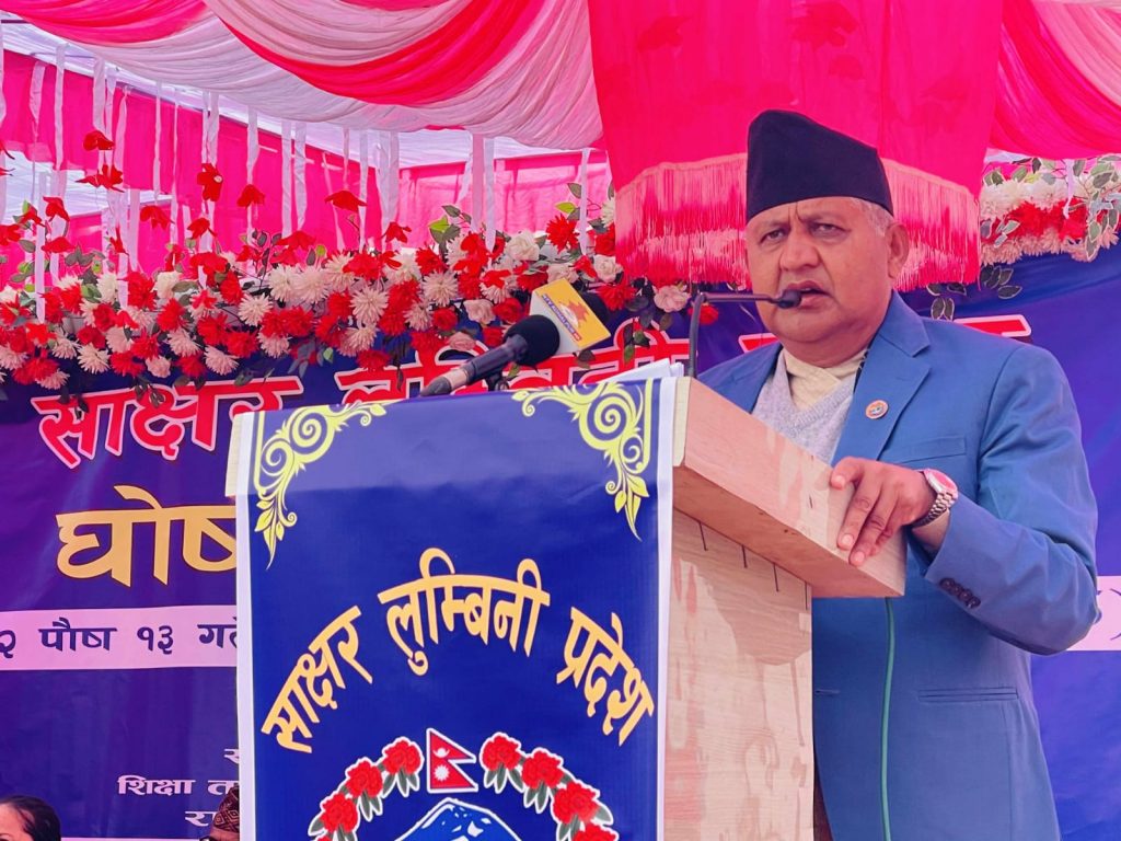 साक्षरबाट शिक्षित प्रदेशतर्फ अघि बढ्छ लुम्बिनी : मुख्यमन्त्री आचार्य