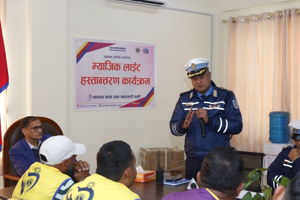 उक्त म्याजिक लाइटलाई लायन्स क्लब अफ काठमाडौँ थलीले खरिद गरी आज जिल्ला प्रशासन कार्यालयमा एक विशेष कार्यक्रमको आयोजना गरी काठमाडौँ उपत्यका ट्राफिक प्रहरी प्रमुख एवं प्रहरी वरिष्ठ उपरीक्षक नवराज अधिकारीलाई हस्तान्तरण गरिएको हो ।