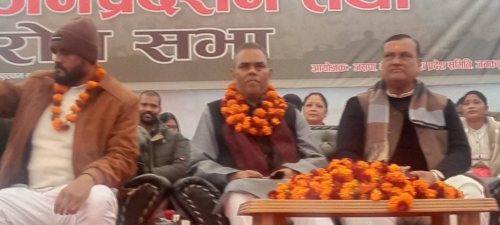 पार्टीको मधेश प्रदेश समितिले जनकपुरधामको ऐतिहासिक तिरहुतिया गाछीमा आयोजना गरेको जनप्रदर्शन तथा विरोध सभामा बोल्दै उहाँले लोकतन्त्रमा कुनै पनि लोकतान्त्रिक पार्टी चुनावबाट पछाडि जान नमिल्ने भन्दै आफ्नो पार्टी सदनदेखि सडकसम्म जनताको अधिकार स्थापित गराउनका लागि चुनावमा जाने तयारी गरेको बताउनुभयो ।