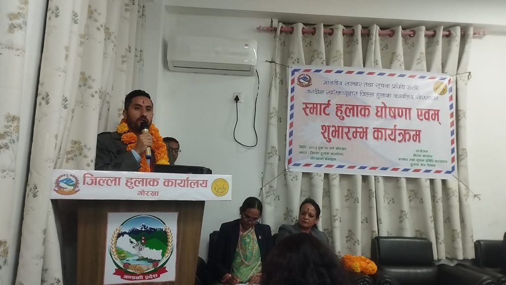 गोरखा जिल्लाले नयाँ इतिहास रचेको उल्लेख गर्दै उहाँले देशभरिका हुलाक कार्यालयहरूमध्ये पहिलो पटक गोरखालाई स्मार्ट हुलाक कार्यालय घोषणा गरिएको जानकारी दिनुभयो ।