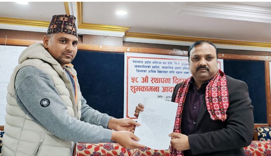 बाँके । नेपालगन्ज उद्योग वाणिज्य सङ्घले तस्करी तथा अवैध आयात–निर्यात नियन्त्रणको माग गर्दै लुम्बिनी प्रदेश सरकारलाई सात बुँदे ज्ञापनपत्र बुझाएको छ । सङ्घ स्थापनाको ५८औँ वार्षिकोत्सवको अवसरमा बिहीबार नेपालगन्जमा आयोजित कार्यक्रममा सङ्घका कार्यवाहक अध्यक्ष चिरञ्जीवी ओलीले लुम्बिनी प्रदेशका आन्तरिक मामिला तथा कानुन मन्त्री आदेशकुमार अग्रवालमार्फत उक्त ज्ञापनपत्र हस्तान्तरण गर्नुभएको हो ।