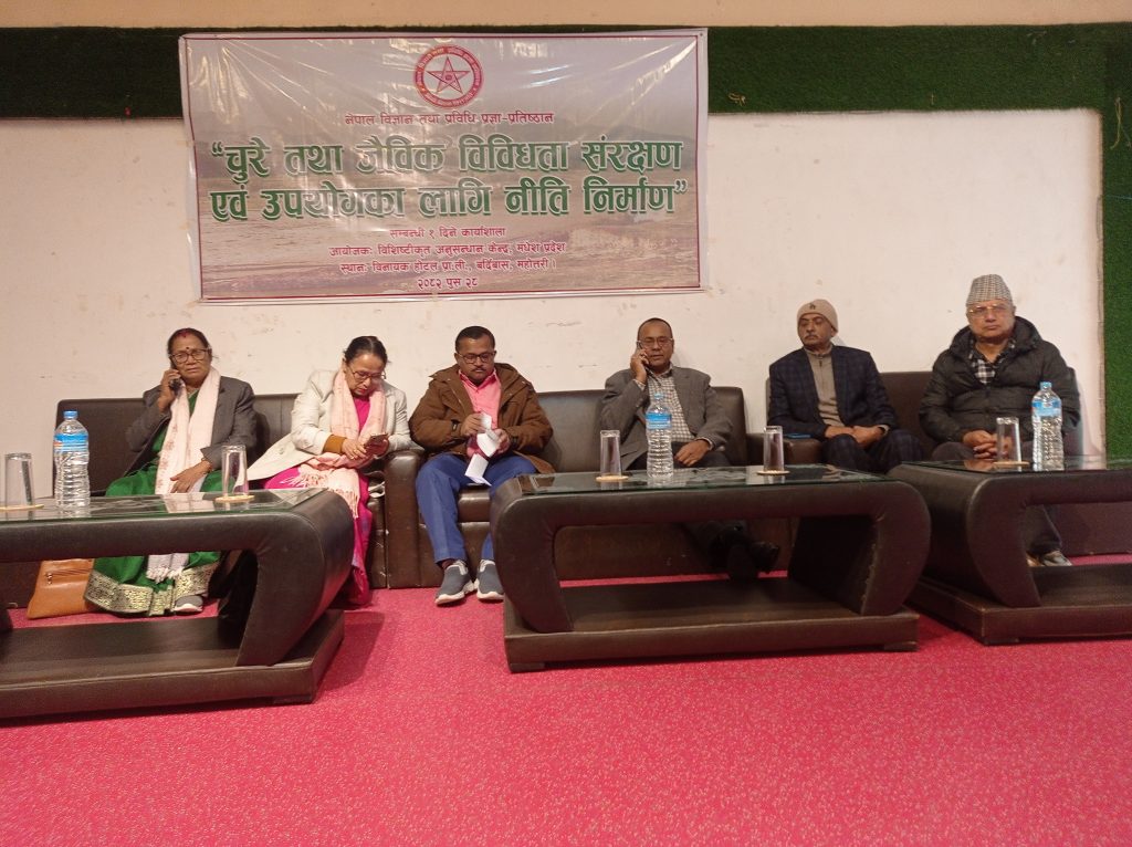 नेपाल विज्ञान तथा प्रविधि प्रतिष्ठानअन्तर्गतको विशिष्टीकृत अनुसन्धान केन्द्र मधेस प्रदेशले आयोजना गरेको कार्यक्रममा मुख्यमन्त्री यादवले चुरे संरक्षण र व्यवस्थापनमा विज्ञहरूका सुझाव प्रदेश सरकारले कार्यान्वयनमा लाने प्रतिबद्धता जनाउनुभयो ।