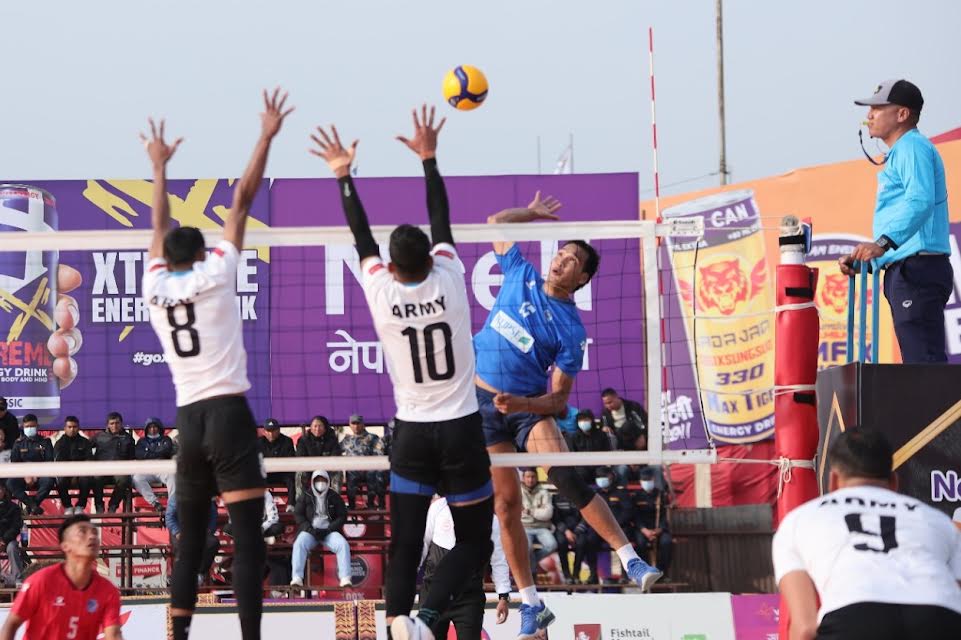 त्यसै गरी आइतबारको अन्तिम तथा पुरुष तर्फको दोस्रो खेलमा नेपाल पुलिसले आर्मीलाई ३—१ को सेटमा पराजित गरेको हो । लगातार दुई सेट आफ्नो पोल्टामा पारेको पुलिसले तेस्रो सेट आर्मीलाई सुम्पियो भने चौथो सेटमा सहज जित हासिल गर्यो । पुलिसले आर्मीलाई २५—२२, २५—१६, २१—२५ र चौथो सेटमा २५—१५ को सेटमा पराजित गरेको हो ।