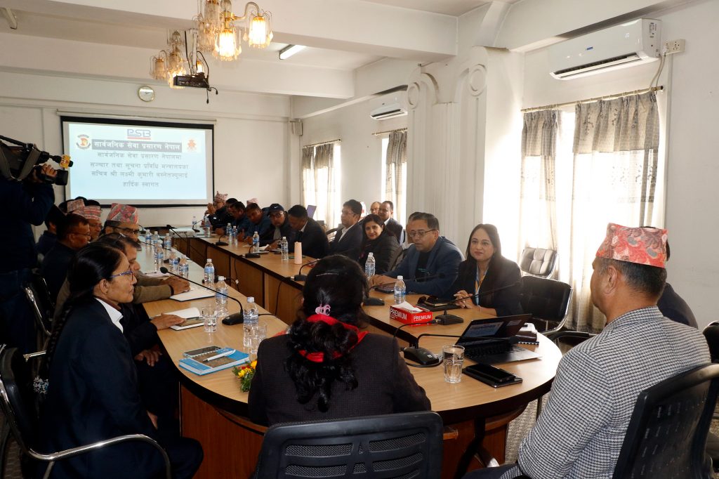 पी. एस. बी नेपालको विद्यमान अवस्थाबारे आज सिंहदरबारमा भएको छलफलमा सञ्चार सचिव बस्नेतले नेपाल टेलिभिजन र रेडियो नेपाललाई एकीकृत गरिएकाले केही पुराना अभ्यास परिवर्तन हुन समय लाग्ने भए पनि परिवर्तित सन्दर्भमा आवश्यकता अनुसार एकीकृत रूपमा दुवै संस्था अघि बढ्दै जानुपर्ने बताउनुभयो ।