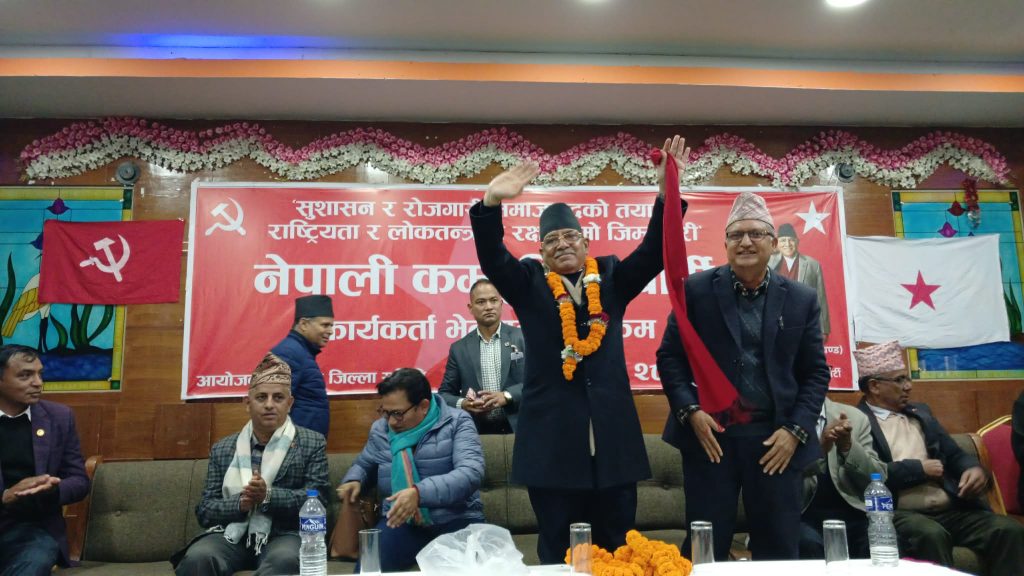 बुधबार पोखरामा नेकपा कास्कीको कार्यकर्ता भेलालाई सम्बोधन गर्दै संयोजक प्रचण्डले नेकपाले अहिलेको अवस्थामा कसैसँग पनि चुनावी तालमेल र समीकरण नगर्ने बताउनुभयो । उहाँले नेकपाले १६४ निर्वाचन क्षेत्रमा आफ्नै उम्मेदवार उठाएको जानकारी दिँदै बागलुङमा मात्र जनमोर्चासँग चुनावी तालमेल भएको उल्लेख गर्नुभयो ।