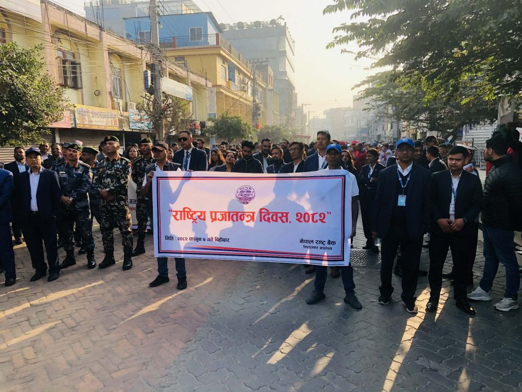 विराटनगर। राष्ट्रिय प्रजातन्त्र दिवस–२०८२ को अवसरमा विराटनगरमा आज बिहान प्रभातफेरी निकालिएको छ ।