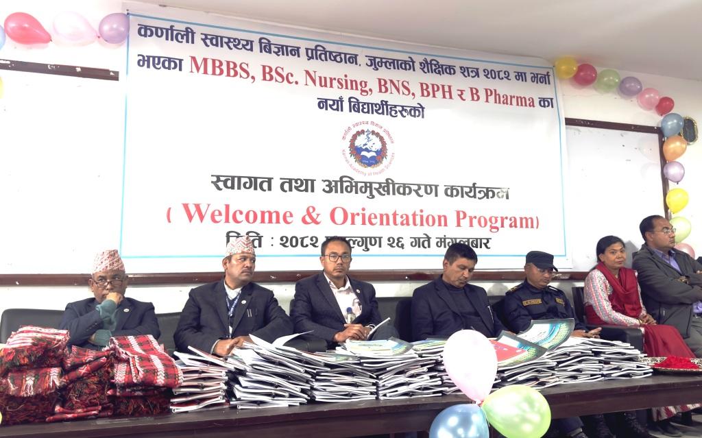 जुम्लामा आएका विद्यार्थी र उनीहरूका अभिभावकलाई मङ्गलवार स्वागतसँगै अभिमुखीकरण गरिएको छ । जसमा एमबीबीएसतर्फ ५० जना, नर्सिङतर्फ २० जना, बीएनएसतर्फ २० जना, बीपीएचतर्फ २० जना र बीएसी नर्सिङतर्फ २० गरी १३० जना विद्यार्थी जुम्ला चिकित्सा शिक्षा अध्ययन गर्न जुम्ला पुगेको प्रतिष्ठानका शिक्षाध्यक्ष डाक्टर डबल बहादुर धामीले बताउनुभयो ।