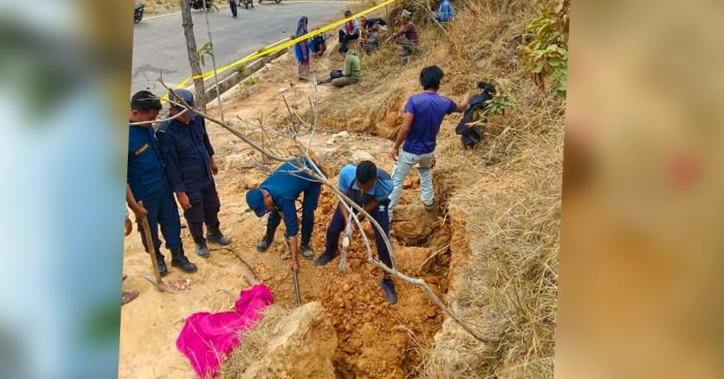रुन्टिगढी गाउँपालिका–७ मोति खन्ने डाँडा, खास्किबनमा शनिबार करिब दिउँसो १२ बजेतिर स्थानीय महिलाहरू घर लिप्ने माटो  खनिरहेको अवस्थामा अचानक माटोको ढिस्का खसेर पुरिँदा स्थानीय ४९ वर्षीया निर्मला बुढाथोकीको घटनास्थलमै मृत्यु भएको प्रहरीले पुष्टि गरेको छ ।