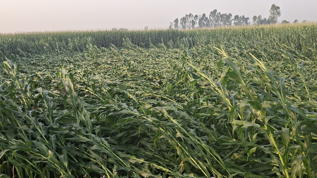 वृन्दावन–१ का किसान शम्भु राउतले धेरै मेहनत गरेर हुर्काएको मकै घोगा लाग्ने बेलामै ढल्दा उत्पादनमा कमी आउने बताउनुभयो । “अब मकै खेती गर्नै मुस्किल जस्तो भयो,” उहाँले भन्नुभयो, “हरेक वर्ष प्राकृतिक विपत्तिका कारण क्षति भोग्नुपर्छ, तर किसानलाई कुनै निकायबाट सहयोग पाइँदैन ।”