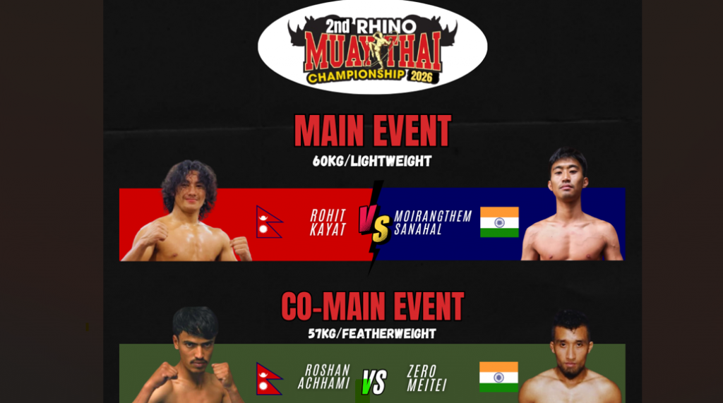 प्रतियोगिताको मेन इभेन्टमा नेपालका रोहित कायत र भारतका मोइराङथेम सनहलले प्रतिस्पर्धा गर्नेछन् । यस्तै को–इभेन्टमा नेपालका रोशन अछामी र भारतका जेरो मेईतेईले प्रतिस्पर्धा गर्नेछन् । नेपालकै एपिएफ क्लब लगायत अन्य खेलाडीहरूले पनि अन्य विभिन्न विधामा प्रतिस्पर्धा गर्नेछन् । सहभागी सम्पूर्ण खेलाडी व्यवसायीक फाइटरहरु मात्रै रहेको दराईले जानकारी दिनुभयो ।