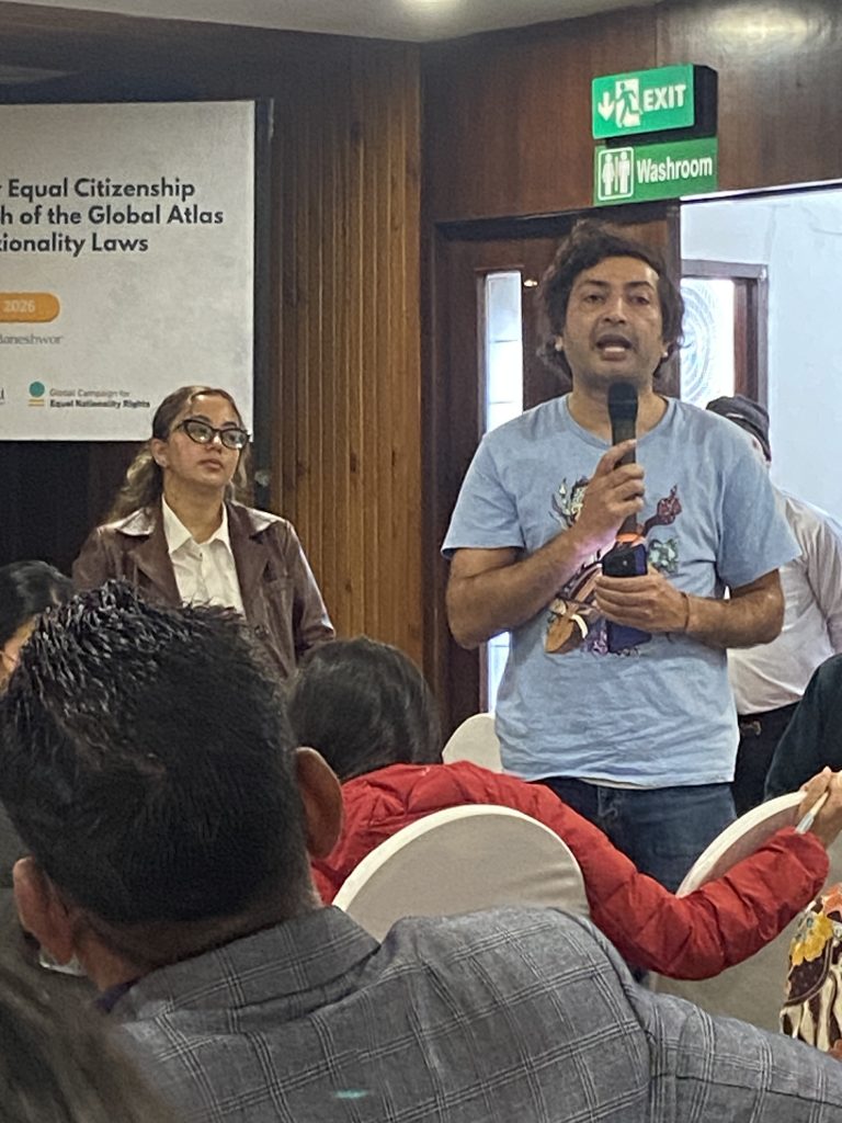 नेपालसहित विश्वका करिब २४ देशमा मात्र आमाले आफ्नो सन्तानलाई नागरिकता प्रदान गर्दा लैङ्गिक विभेदकारी कानुनी व्यवस्था भोग्नुपरेको त्यस अवसरमा उल्लेख गरियो । अधिवक्ता प्रसन्ना निर्मल अर्यालले संयुक्त राष्ट्रसङ्घका सदस्य राष्ट्रमध्ये करिब ८८ प्रतिशत देशले आफ्ना नागरिकता कानुनमा लैङ्गिक समानता सुनिश्चित गरिसकेकाले नेपालले पनि त्यसलाई आत्मसात गर्नुपर्नेमा जोड दिनुभयो ।