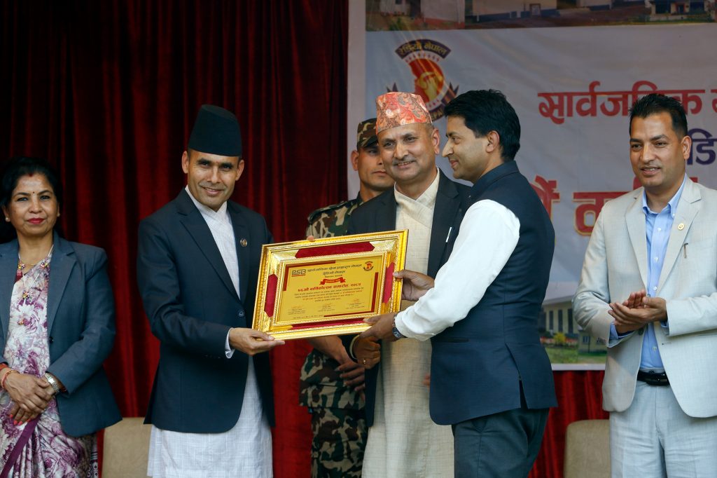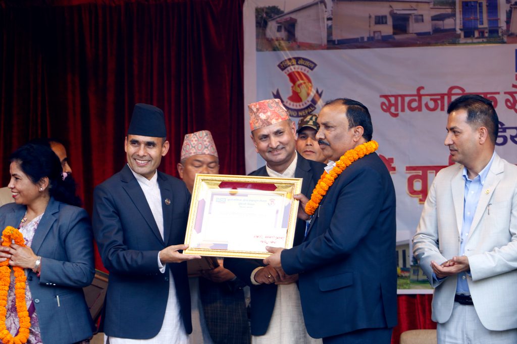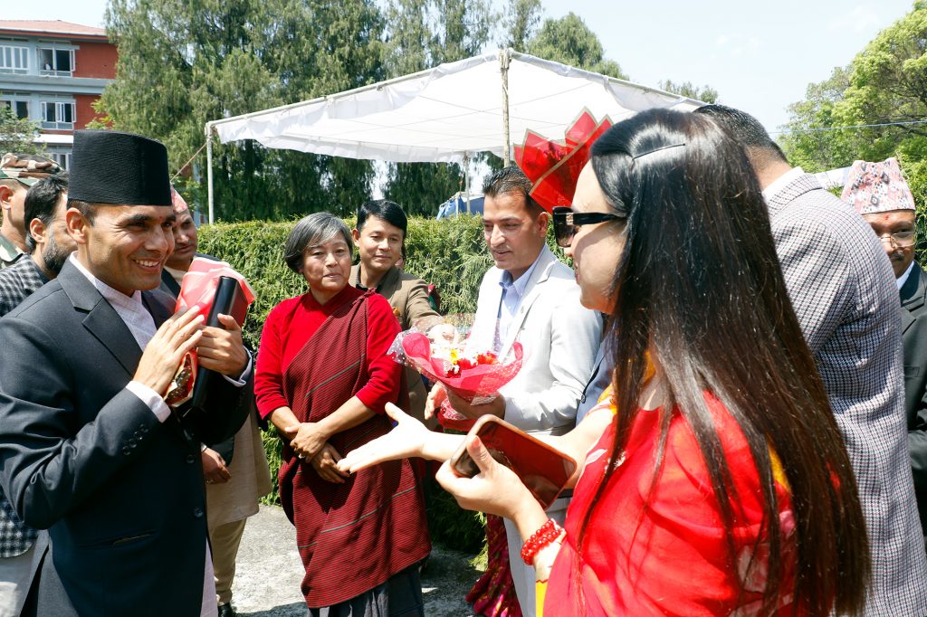 वार्षिकोत्सव कार्यक्रमको उदघाटनसत्रमा कार्यकारी अध्यक्ष डा. विष्टले मन्त्री तिमिल्सिना र सचिव बस्नेतलाई मायाको चिनो प्रदान गर्नुभयो ।