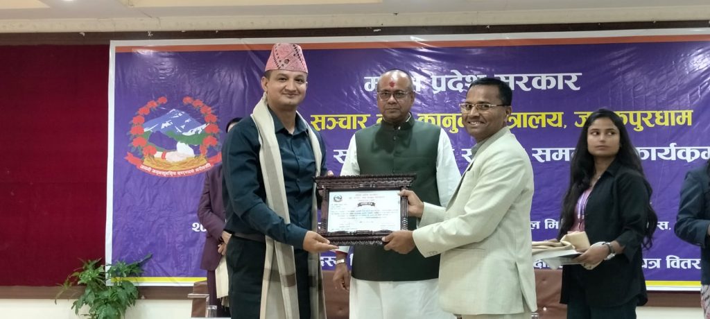 कार्यक्रममा मुख्यमन्त्री यादव तथा गृहमन्त्री महतोले गत फाल्गुण महिनामा सम्पन्न भएको प्रतिनिधि सभा चुनावमा शान्ति सुरक्षा स्थापनामा उत्कृष्ट भूमिका निर्वाह गर्नुभएका मधेश प्रदेशका विभिन्न जिल्ला तथा प्रदेशका सुरक्षा निकायका प्रमुखहरूलाई कदर पत्र सहित दोसल्ला ओढाएर सम्मान गर्नुभएको मधेशका गृह सञ्चार मन्त्रालयका शाखा अधिकृत राधेशंकर प्रसाद पालले जानकारी दिनुभयो ।