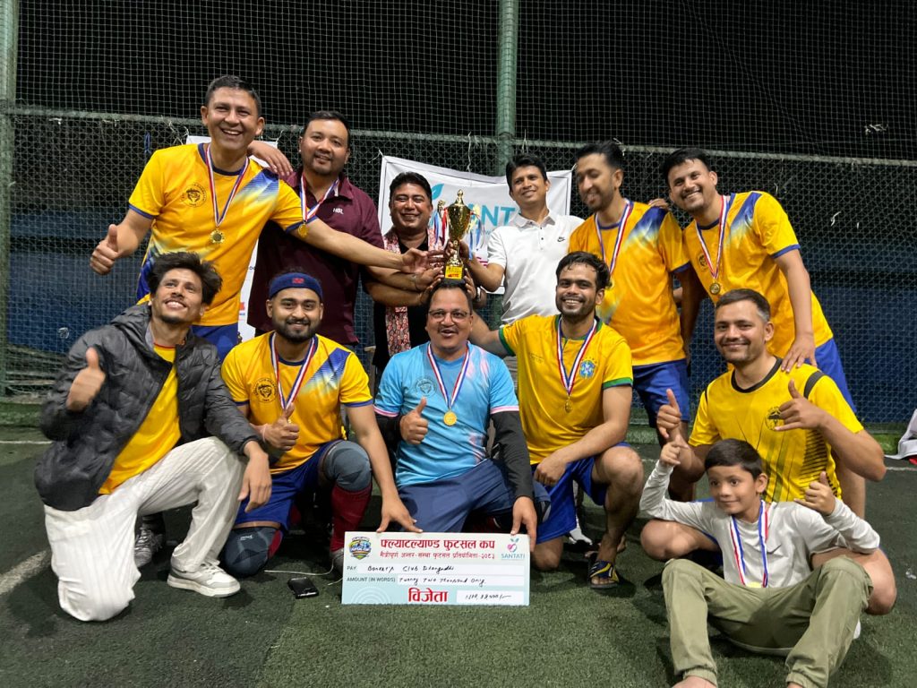 सुदूरपश्चिम । नयाँ वर्षको अवसरमा धनगढीमा आयोजित ‘सन्तति आइभिएफ फ्ल्याटल्याण्ड फुटसल कप’ को उपाधि बैंकर्स क्लब धनगढीले जितेको छ ।
