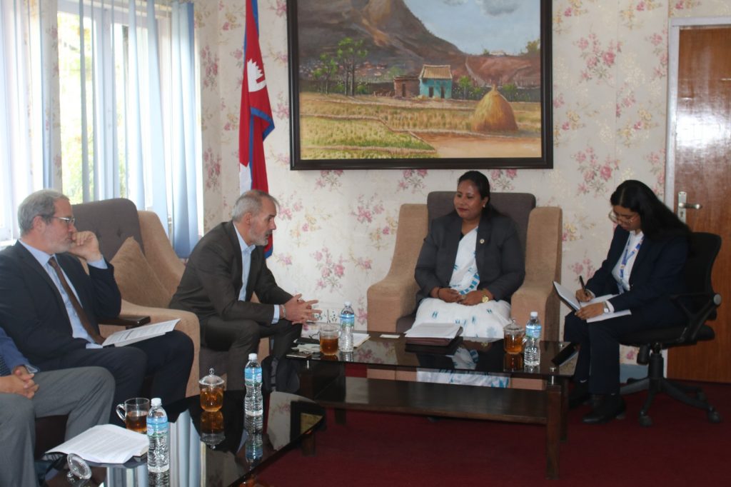 काठमाडौँ । कृषि तथा पशुपन्छी विकास र वन तथा वातावरण मन्त्री गीता चौधरीसँग नेपालका लागि एसियाली विकास बैङ्क (एडिबी)का देशीय निर्देशक अर्नाउड काउचोइसले भेटवार्ता गर्नुभएको छ ।