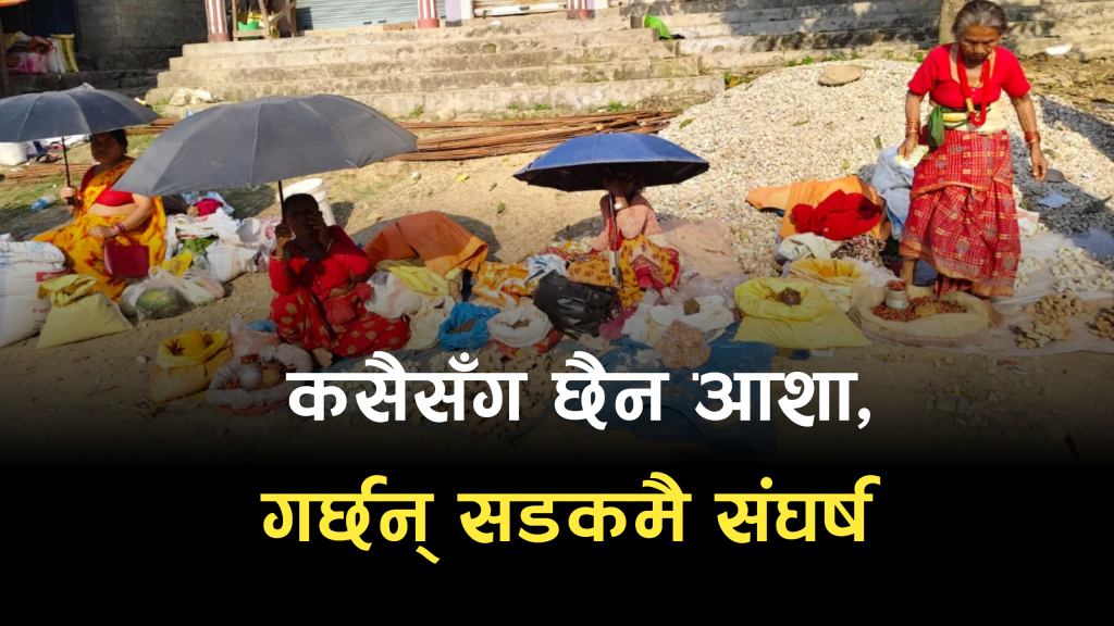 कमलामाई (सिन्धुली) । वैशाखको चर्को घामले जमिन तातेको छ । शीतल दिने छहारी छैन । छाता ओढेर ग्राहकको प्रतीक्षामा छन्– ढाटिमाया दर्जी, सुकुमाया थिङ र फूलमाया वाइवा । छाताले शीर ढाकिए पनि जीवनका सङ्घर्षहरू ढाकिन सकेका छैनन् । फागुन–चैतको आँधी हुरी होस्, वैशाख–जेठको चर्को घाम वा असार–साउनको झरी किन नहोस्, दैनिक हाट र फुटपाथमा सङ्घर्ष गरिरहेका भेटिन्छन् ।
