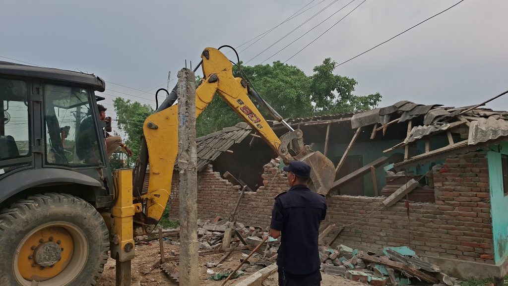 नगरप्रमुख विनोदप्रसाद कुर्मीको नेतृत्वमा नगरपालिकाले वर्षौंदेखि अतिक्रमण गरी बसोबास गर्दै आएका दुई परिवारको घर शुक्रबार डोजर प्रयोग गरी हटाएको हो । नगरपालिका क्षेत्रभित्र पर्ने उक्त जग्गामा प्रशासनिक भवन निर्माणमा अवरोध उत्पन्न भएपछि अतिक्रमित संरचना हटाइएको जनाइएको छ ।
