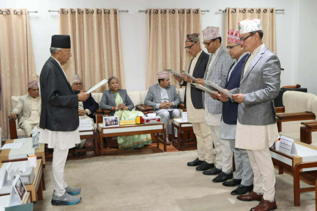 आयोगका नवनियुक्त अध्यक्ष भण्डारीले आजै कायममुकायम (कामु) प्रधानन्यायाधीश सपना प्रधान मल्ल समक्ष पद तथा गोपनीयताको शपथ ग्रहण गर्नुभयो भने अन्य सदस्यहरू तत्कालीन पुनरावेदन अदालतका पूर्व मुख्यन्यायाधीश पुरुषोत्तम पराजुली, उच्च अदालतका पूर्वन्यायाधीश चण्डीराज ढकाल, पूर्व प्रहरी नायब महानिरीक्षक गणेश केसी र चार्टर्ड एकाउन्टेन्ट प्रकाश लम्साललाई अध्यक्ष भण्डारीले शपथ गराउनुभएको हो।