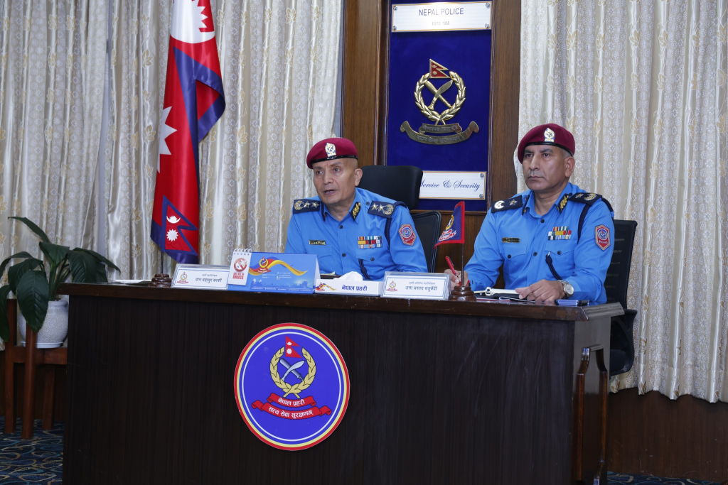 नेपाल प्रहरी प्रधान कार्यालयबाट भर्चुअल माध्यमबाट प्रहरी कर्मचारीसँगको बैठकमा प्रहरी महानिरीक्षक कार्कीले सरकारद्वारा लागू गरिएका नीति तथा कार्यक्रमलाई प्रभावकारी रूपमा कार्यान्वयन गरी आ–आफ्नो क्षेत्रमा कुनै पनि आपराधिक क्रियाकलापका घटना हुन नदिन लाग्नुपर्ने बताउनुभयो ।