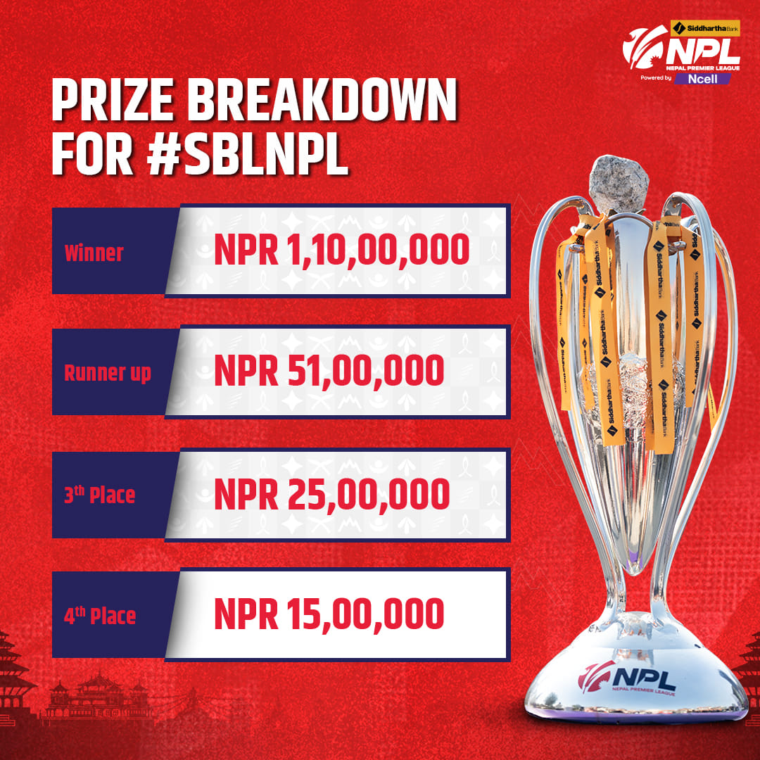 Among these teams, whoever secures second position will receive Rs 5.1 million in cash prize while the second runner up team will get Rs 2.5 million and the consolation prize is Rs 1.5 million, informed the organizer Cricket Association of Nepal (CAN).