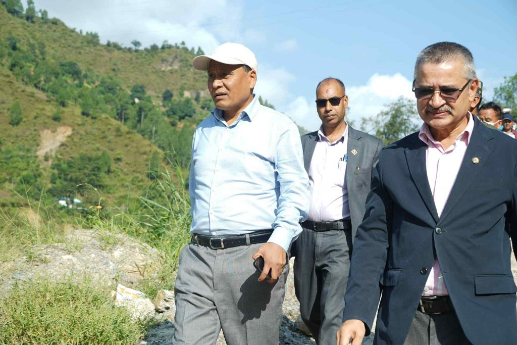Minister for Physical Infrastructure and Transport Kulman Ghising, along with officials from the Road Department, today monitored damaged sections of the BP Highway caused by recent floods and landslides.
