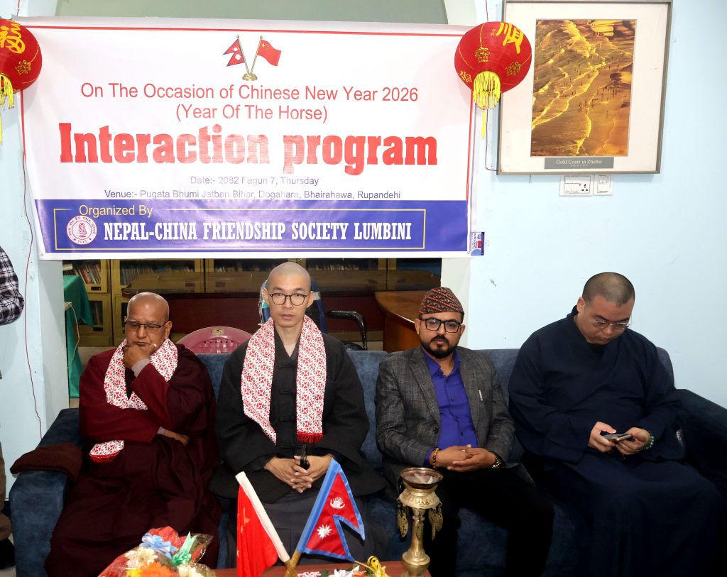 February 19, Kathmandu: An interaction program was organized on Thursday at Pugata Bhumi Jetavan Vihar, Siddharthanagar Municipality-4 in Rupendehi, to mark the Chinese New Year, the Year of the Horse.