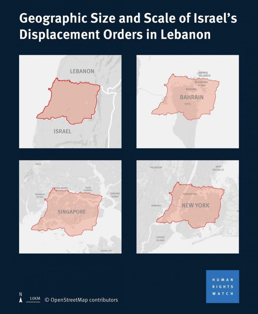 Human Rights Watch has cautioned against the risk of large-scale displacement in the region, raising legal concerns about the movement of civilian populations in the event of further escalation.